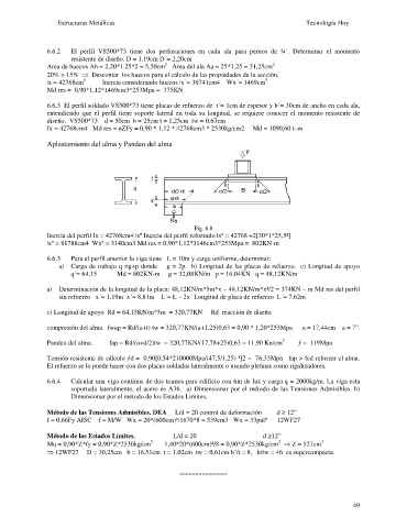 6.6.2 El perfil VS500*73 tiene dos perforaciones en cada ala para pernos de ¾¨. Determinar el momento