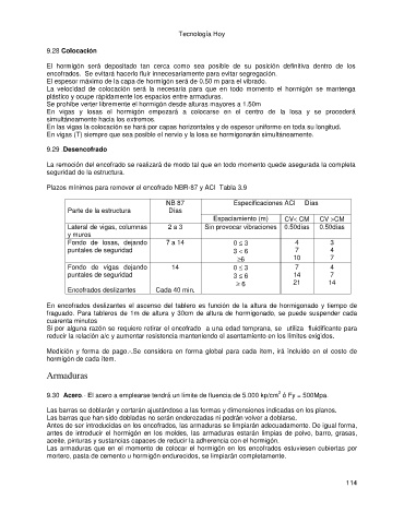 Plazos mínimos para remover el encofrado NBR-87 y ACI Tabla 3.9
