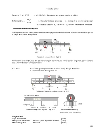 Posición de carga sobre larguero fig. 11.10 Ancho de infuencia de carga