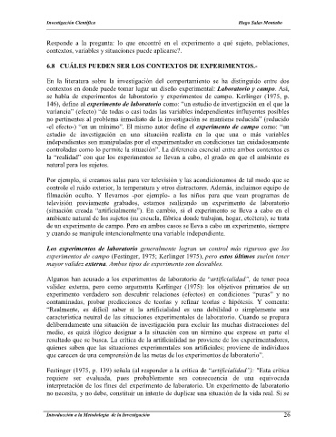 experimentos de campo (Festinger, 1975; Kerlinger 1975), pero estos últimos suelen tener